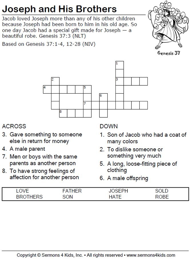 Joseph Crossword Puzzle Printable