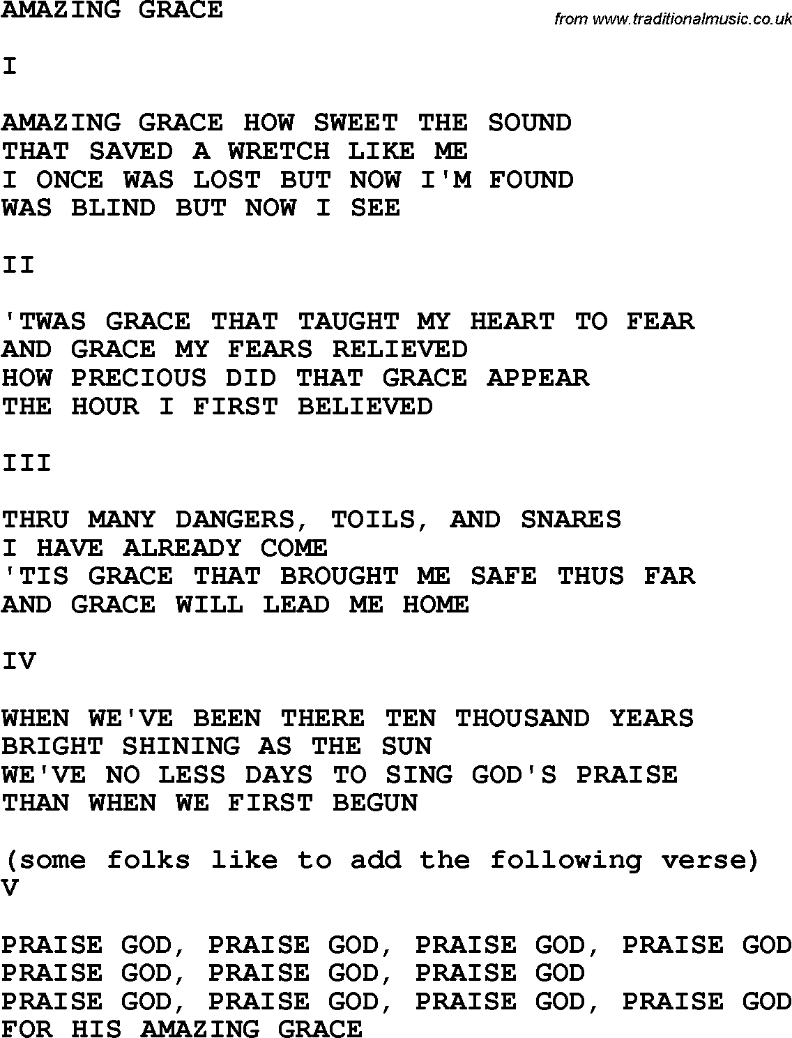 Amazing Grace Words PrintableAmazing Grace Words Printable